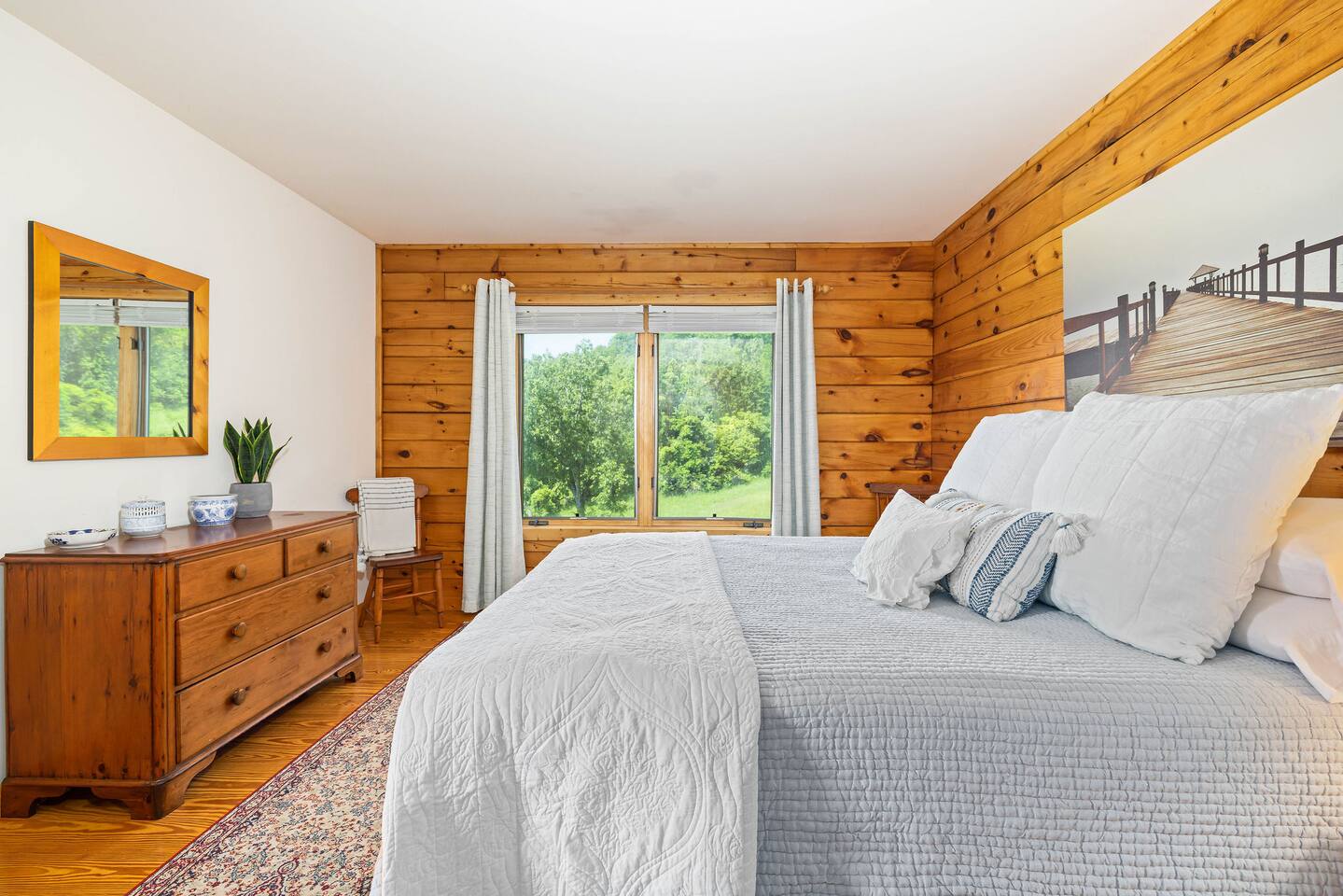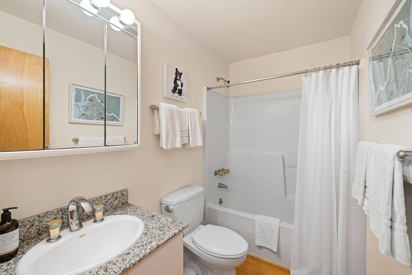 *If you're coming in Jan-Feb with snow on the ground, it's best to have a 4x4 to get up the mountain. Here's what you can expect at this home we call Bear Cove: **MAIN LEVEL** 🛋️ LIVING AREA ✓ Satellite TV (please note, during bad weather this may be effected) ✓ Comfortable seating w/ beautiful views ✓ Light filtering shades ✓ Wood burning fireplace 🍳KITCHEN ✓ Fully equipped for cooking meals (pots/pans, dishes, etc.) ✓ Fridge, dishwasher, 2 ovens, gas stove, sink, microwave ✓ Keurig 🍴 DINING AREA ✓ Table and chairs for 6 🛏️ BEDROOM #1 ✓ King bed (*this bed can be separated into 2 twins. If that would work better for your group, just let us know and we'll make sure it's ready for you!) ✓ Dresser ✓ Closet 🛏️ BEDROOM #2 ✓ Queen bed ✓ Dresser ✓ Closet 🛁 FULL BATHROOM (HALL) ✓ Shower/tub combination ✓ Sink and toilet 🌳 OUTSIDE DECK ✓ Lounging sectional w/ fire pit ✓ Dining table w/ umbrella ✓ Gas grill **UPSTAIRS** 🛏️ PRIMARY BEDROOM ✓ King bed ✓ Dresser ✓ Closet 🛏️ PRIMARY BATHROOM ✓ Double sink vanity ✓ Soaking tub ✓ Shower LANDING ✓ Reading chair where you can soak in the views **BASEMENT** (all ceilings are unfinished and there is no bathroom on this floor) 🛋️ LIVING AREA ✓ Couch and chairs ✓ TV ✓ Foosball table 🛏️ BEDROOM #4 *Please note, this bedroom is somewhat open to the basement living area. It does not have a door, and a full-length curtain sections off the laundry area. ✓ King bed ✓ Dresser ✓ Closet 🫧 LAUNDRY AREA ✓ Washer & dryer available for your use 🌳 OUTDOORS ✓ Hammock ✓Porch swing ✓ Stocked pond (catch and release fishing only) ✓ Plenty of land to play! 🚗 PARKING: 3 cars can fit in the driveway ❄️ CLIMATE CONTROL: Central heat & air 🦌WILDLIFE + RURAL LIVING: The appeal of Hot Springs is the opportunity to relax surrounded by beautiful nature. With nature comes bugs and wildlife. While we do have regular pest control services at our properties, please don't be alarmed if you experience occasional elements of mountain/rural living. *We do not rent to anyone under the age of 25. *Towels and linens are included. GUESTS WILL HAVE USE OF THE ENTIRE HOME. 🐶 While we love fur babies, this home is NOT pet friendly and we must be firm on that policy. If a pet is detected upon checkout, additional charges will be incurred. 📍WHAT'S NEARBY: Omni Homestead Resort: 8 min Skiing + Golf: 10 min Soak in the springs: 14 min Groceries: 10 min Dan Ingalls Overlook and trail: 20 min Troddenvale winery: 15 min Warm Springs Dairy: 14 min Garth Newel Music Center: 15 min Douthat State Park: 30 min Lake Moomaw: 35 min HOSTED BY: Bear Cove is hosted by All Belong Co, a hospitality team dedicated to providing 5 star stays. Our team will take good care of you!