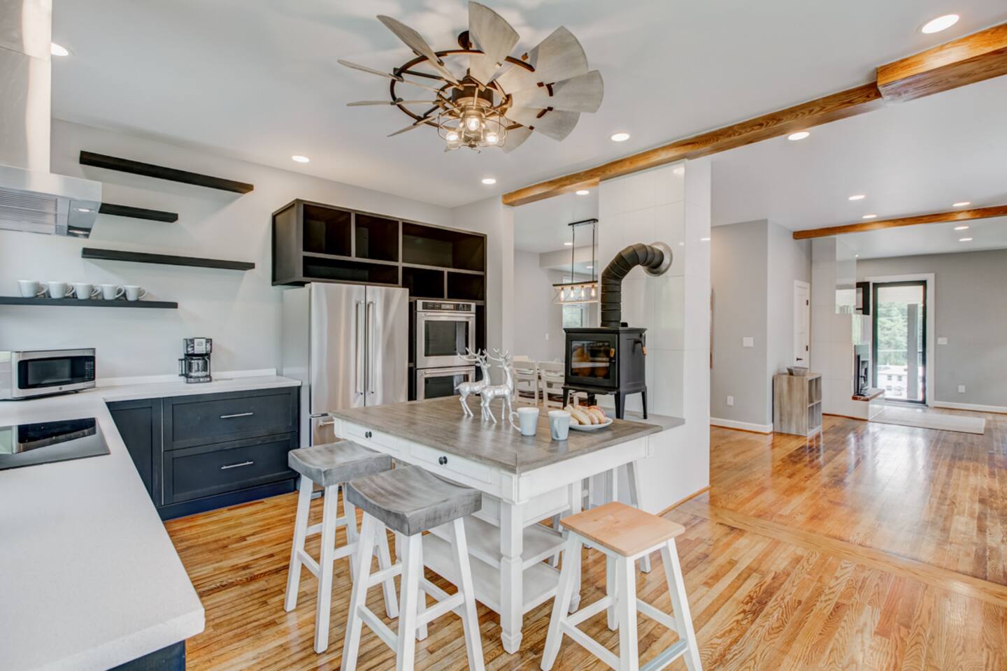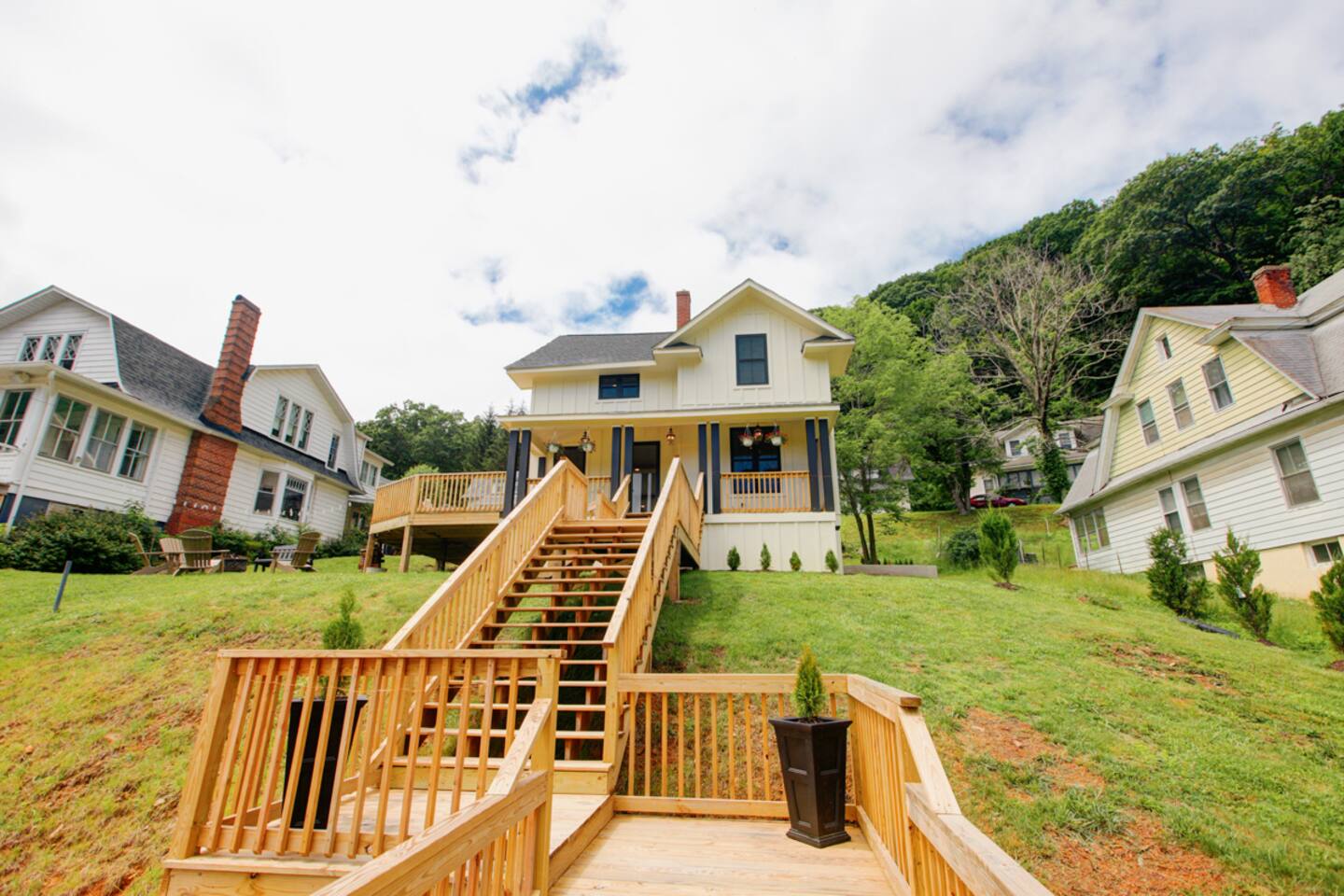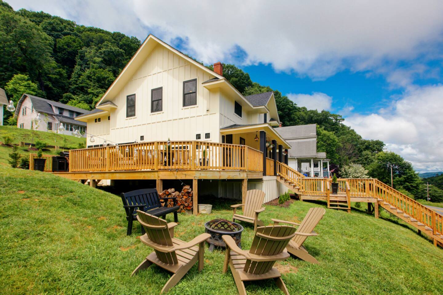The perfect spot for your trip to Hot Springs! -LOCATION is everything: walkable to the Omni Homestead Resort, steps to Bacova Beer Co + deli -3 bedrooms, each with its own private bathroom! -Awesome outdoor space w/ gas grill, fire pit, lounging -High speed fiber internet, fireplace, great views -Open floor plan w/ high ceilings + lots of natural light -Gourmet kitchen w/ double oven + wood stove -Ideal for active couples, friends, families & work travel!