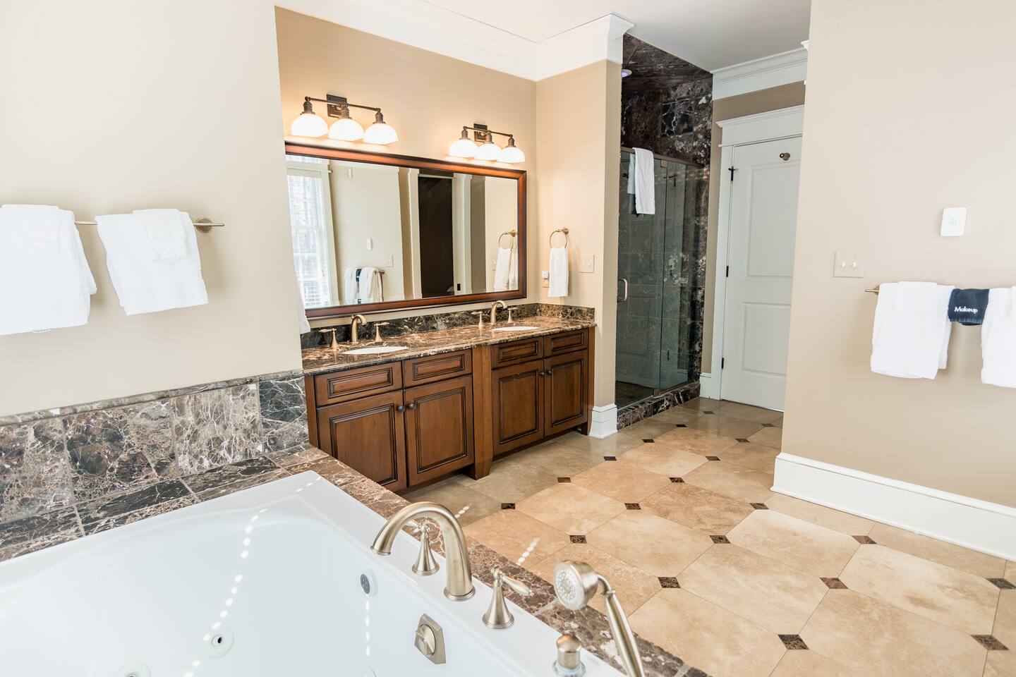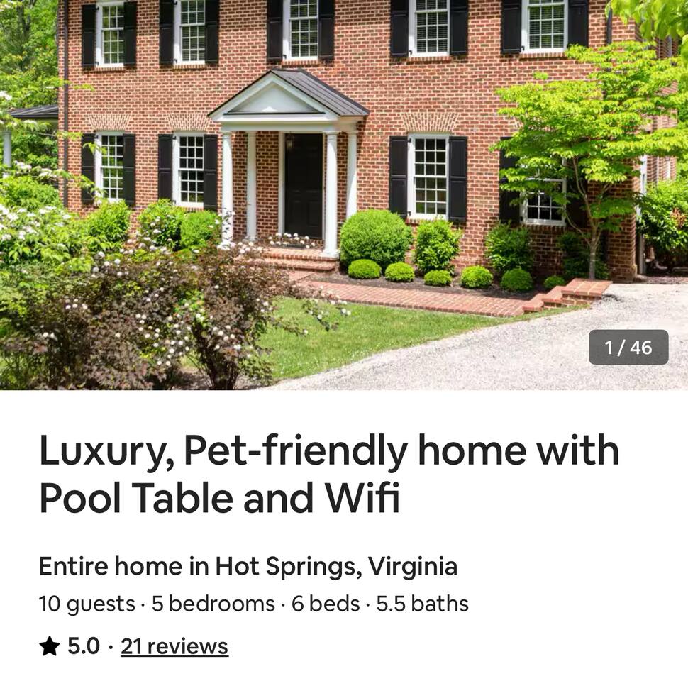 Spacious, luxury home loaded w/ amenities in a great location -Less than 1 mile to Omni Homestead Resort -5 bedrooms (4 king beds!), each w/ private bathrooms! -Foosball + pool table, wet bar, 2 TV's, wifi -Gourmet fully stocked kitchen w/ double oven, 2 fireplaces, covered porches -3 living areas + formal dining room -Free passes with your stay to the Old Dairy (outdoor community pool, indoor hot tub, sauna, fitness room, & game room) -Perfect for golfers, family vacation, friends weekends!
